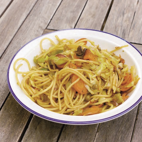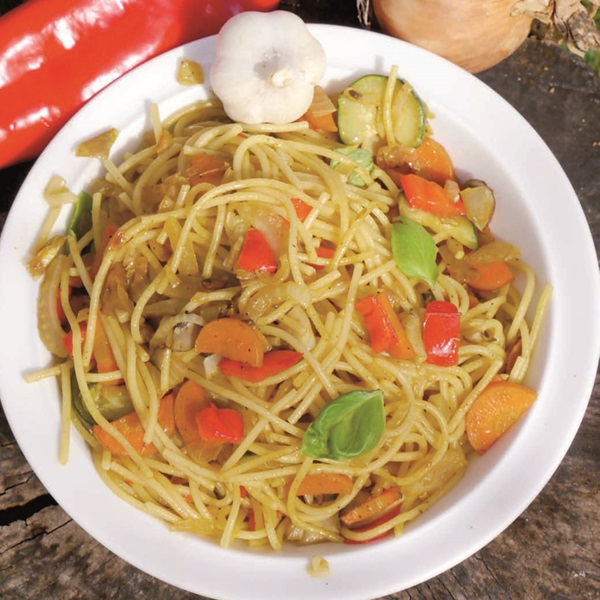 • Gebratene Nudeln mit buntem Garten-Gemüse